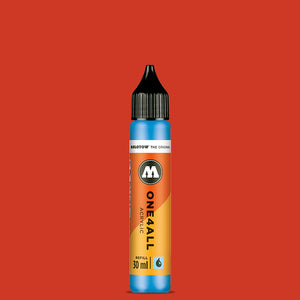 With its 50 color shades the ONE4ALL acrylic marker system offers the most extensive acrylic color spectrum of the market. The paint is especially outstanding through its high opacity on nearly all surfaces. No matter whether the color is being applied with a marker, brush or stamp. The colors are UV resistant. The 30 ml refill-bottle is perfect for those who want to start on a shoestring. This refill is not only suitable for refilling ONE4ALL markers, meanwhile it is also very popular as an own painting tool.
