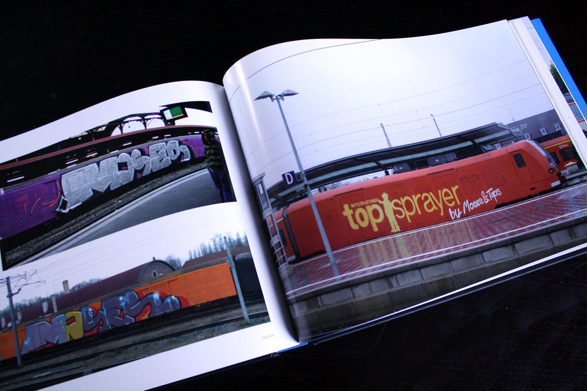 Taps & Moses have been two of the post prolific graffiti writers in Europe for years. More recently, between 2008 to 2010, using their collective moniker Topsprayer, they painted 1000 trains in 1000 days. It's not only the volume of production for which they're known, but the quality of their work. As friends of the world famous Brazilian duo Os Gemeos, they even painted trains in South America. So far only about 5% of their work as Topsprayer has made its way into the public's eye, making this one of the most coveted Black Books for 2011. In addition to an astounding variety of pieces executed in known graffiti forms, some very unusual productions are featured in the book.