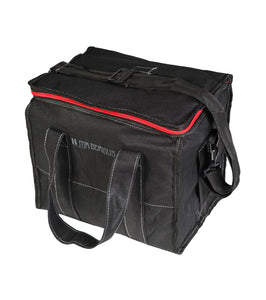 Reason to use: Holds 12 spray cans, bag is discrete black,