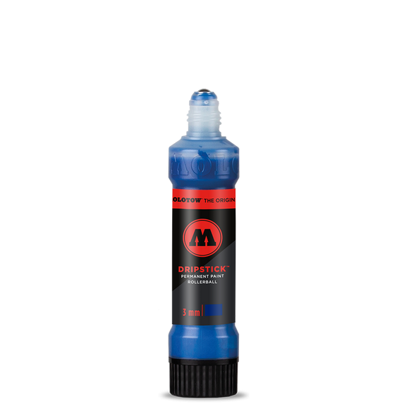 The pocket-sized DRIPSTICK Rollerball (30 ml) is now available in 6 color shades! Equipped with the spring-loaded 3 mm rollerball, this DRIPSTICK works ideal on rough surfaces like concrete, cardboard, stone, wood and metal. Furthermore, the paint application can be controlled easily due to its “squeeze body”. The glossy, alcohol-based ink is permanent, higly opaque, quick-drying and suitable for indoor and outdoor use. Made in Germany