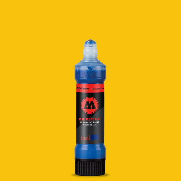 The pocket-sized DRIPSTICK Rollerball (30 ml) is now available in 6 color shades! Equipped with the spring-loaded 3 mm rollerball, this DRIPSTICK works ideal on rough surfaces like concrete, cardboard, stone, wood and metal. Furthermore, the paint application can be controlled easily due to its “squeeze body”. The glossy, alcohol-based ink is permanent, higly opaque, quick-drying and suitable for indoor and outdoor use. Made in Germany